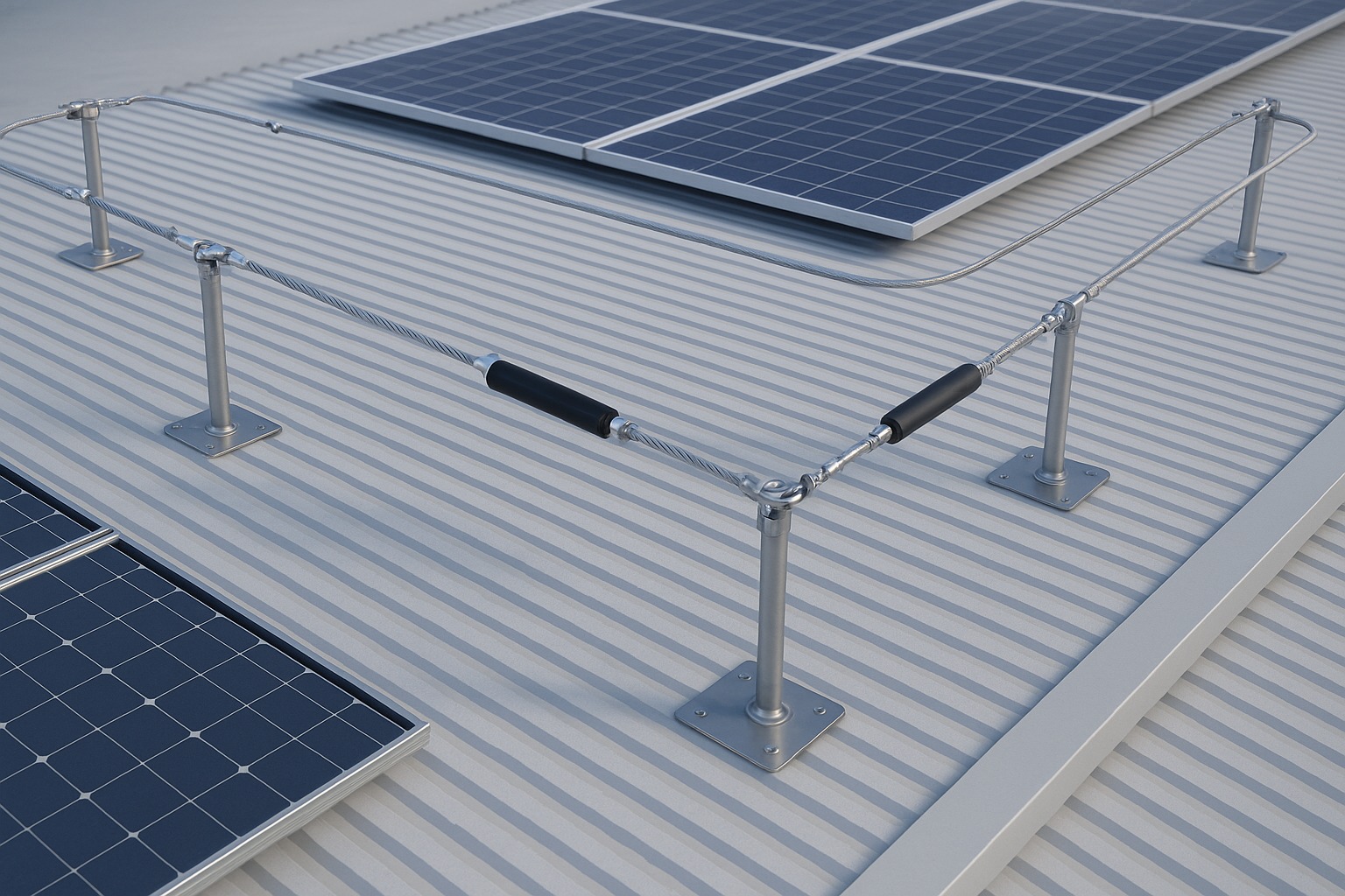 MEGA FORM’s Safety Lifeline System is designed to provide reliable fall protection for workers operating at height on rooftops and open structures. This system ensures maximum safety while allowing continuous mobility along the horizontal axis without disconnecting, making it ideal for solar installations and maintenance work.